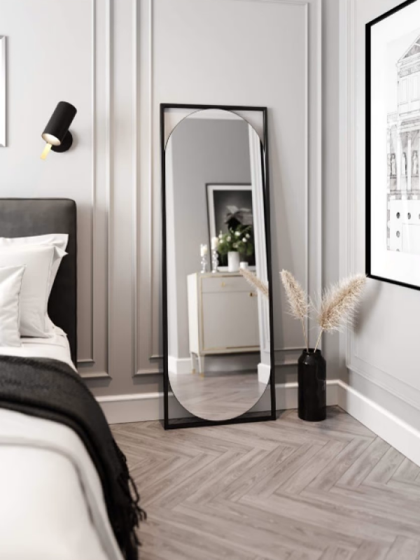 Дизайнерское настенное напольное зеркало Glass Memory Lustrous в металлической раме черного цвета в Нижнем Новгороде